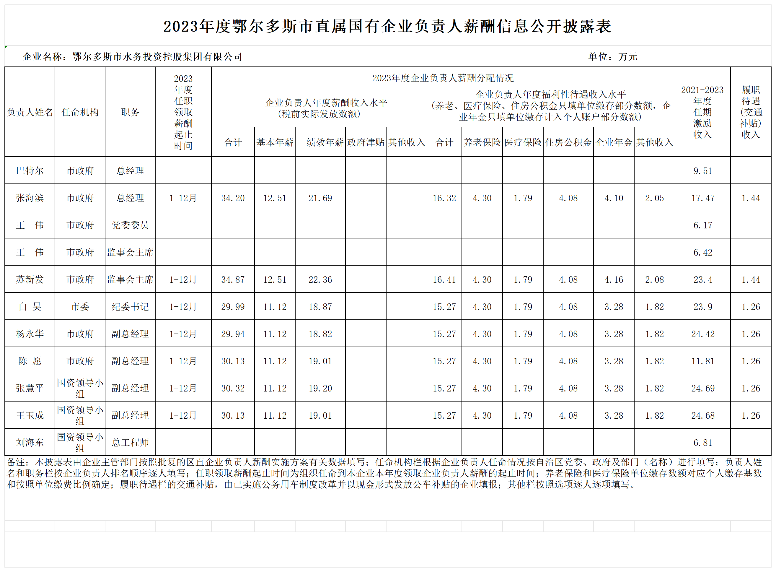 2023年度鄂爾多斯市直屬國有企業(yè)負責(zé)人薪酬信息公開披露表