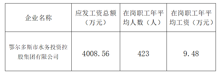 現(xiàn)將鄂爾多斯市水務投資控股集團有限公司2021年度工資總額信息披露如下: