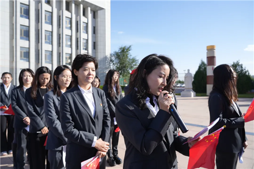 升旗儀式后,在飄揚的五星紅旗下,全體干部職工合唱《歌唱祖國》。“五星紅旗迎風飄揚,勝利歌聲多么嘹亮……”,每個人都揮舞著手中的國旗,臉上洋溢著喜悅與自豪,歌聲激情澎湃,匯聚成一股強大的力量,唱出了中華民族的豪邁氣概,唱響了新時代愛國主義主旋律。活動最后進行了愛國主義詩歌朗誦。