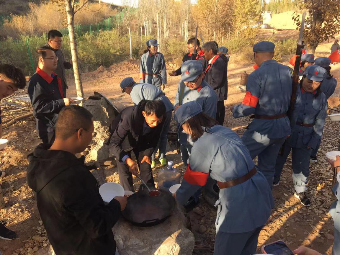 城市水務(wù)公司主題黨日活動(dòng) (二)體驗(yàn)教學(xué) 1.紅色記憶之路 體驗(yàn)時(shí)長(zhǎng):3小時(shí) 情景互動(dòng):★★★★★ 體能消耗:★★★★★ 體驗(yàn)費(fèi)用: ①場(chǎng)地費(fèi)+解說(shuō)費(fèi):2000元 ②拓展費(fèi)用:800元 簡(jiǎn)介:市水投集團(tuán)依托園區(qū)地理優(yōu)勢(shì),開(kāi)創(chuàng)性的打造體驗(yàn)式愛(ài)國(guó)主義教育基地——紅色記憶之路。紅色記憶之路占地面積約37畝,高度復(fù)原了長(zhǎng)征時(shí)期的井岡山雕塑、瑞金蘇維埃政府舊址、岷山、臘子口、鐵索橋等實(shí)景,全程再現(xiàn)了1934年至1936年紅軍長(zhǎng)征壯麗史詩(shī)。通過(guò)歷史講解、實(shí)景體驗(yàn)、素質(zhì)拓展等方式,參與者可穿一次紅軍服、唱一首紅軍歌、走一次長(zhǎng)征路、吃一頓紅軍飯,深刻體會(huì)到老一輩無(wú)產(chǎn)階級(jí)革命者當(dāng)年艱苦卓絕的光輝歷程,學(xué)習(xí)紅軍不拍苦不怕累的精神,進(jìn)一步繼承和發(fā)揚(yáng)好黨的艱苦奮斗、自力更生的優(yōu)良傳統(tǒng),厚植愛(ài)國(guó)主義情懷。 培訓(xùn)效果: 1.通過(guò)對(duì)憶長(zhǎng)征光榮而壯烈的革命歷史的學(xué)習(xí),激發(fā)參與者愛(ài)國(guó)熱情和報(bào)效祖國(guó)的壯志雄心。 2、繼承和弘揚(yáng)長(zhǎng)征精神,豐富艱苦奮斗的內(nèi)涵,將崇高理想與現(xiàn)實(shí)工作統(tǒng)一起來(lái),促使自己不斷進(jìn)步。 3、通過(guò)走進(jìn)憶長(zhǎng)征,體驗(yàn)紅軍生活,感受勞動(dòng)光榮,繼承和發(fā)揚(yáng)革命前輩艱苦樸素的奮斗精神,懂得依靠自己的智慧和勞動(dòng)才能創(chuàng)造自己的幸福人生。 4、將“愛(ài)國(guó)主義教育”、“團(tuán)隊(duì)拓展訓(xùn)練”及“情景式黨課”緊密結(jié)合,讓參與者更深刻的體會(huì)到現(xiàn)在幸福生活的來(lái)之不易并懂得珍惜,同時(shí)培養(yǎng)并加強(qiáng)其社會(huì)主義榮辱觀(guān)和責(zé)任感,引導(dǎo)積極踐行社會(huì)核心價(jià)值觀(guān)。 活動(dòng)掠影: